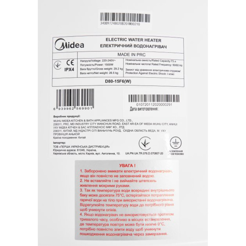 Купити бойлер Midea D80-15F6(W)
