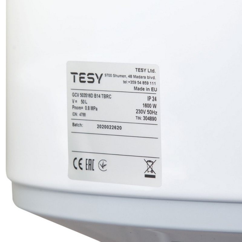 Бойлер Tesy Anticalc Slim 50, Сухий ТЕН, обсяг 50л (GCV 503516D B14 TBRC) – водонагрівач циліндричної форми з диаметром 35 та 38 см для установки у вузьких місцях та сухим ТЕНом.