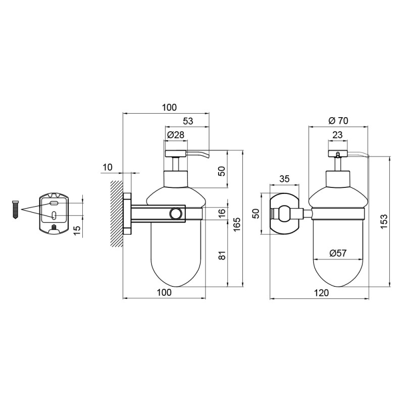 Дозатор для рідкого мила Qtap Liberty BLM 1152 робить процес миття рук гігієнічним і швидким. Латунний тримач дозатора у вигляді кронштейна з кільцем має антикорозійні властивості і кріпиться на стіну. Пляшка виконана з матового скла. Дизайн дозатора підходить за дизайном до інших аксесуарів такого ж кольору, чудово доповнить невеликі санвузли і, завдяки своїм розмірам, може кріпитися в будь-якому зручному та доступному місці. Не займає місце на раковині.