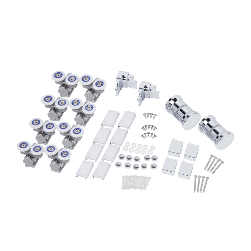 Комплектація | Двойные ролики, ручки, верхний профиль, нижний профиль, боковые профили, набор уплотнителей, расширительные профили, 2 стеклянные двери, 2 глухих стекла, комплект крепежей, заглушки, соединяющие элементы, фиксаторы. |