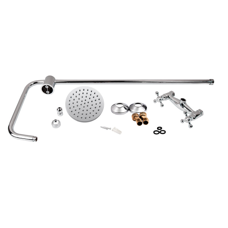 Комплектація | Смеситель, кронштейн для верхнего душа, лейка для верхнего душа, душевая стойка, крепежи. |
