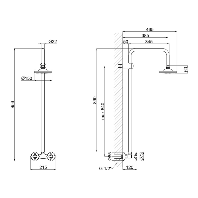Висота душової стійки, мм | 890 |