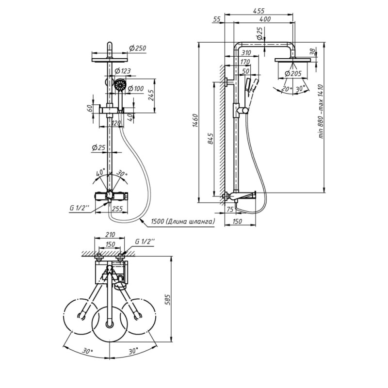 Довжина кронштейна для верхнього душа, мм | 400 |
