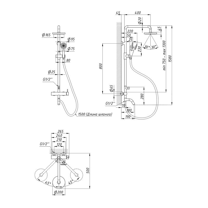 Висота душової стійки, мм | 750-1300 |
