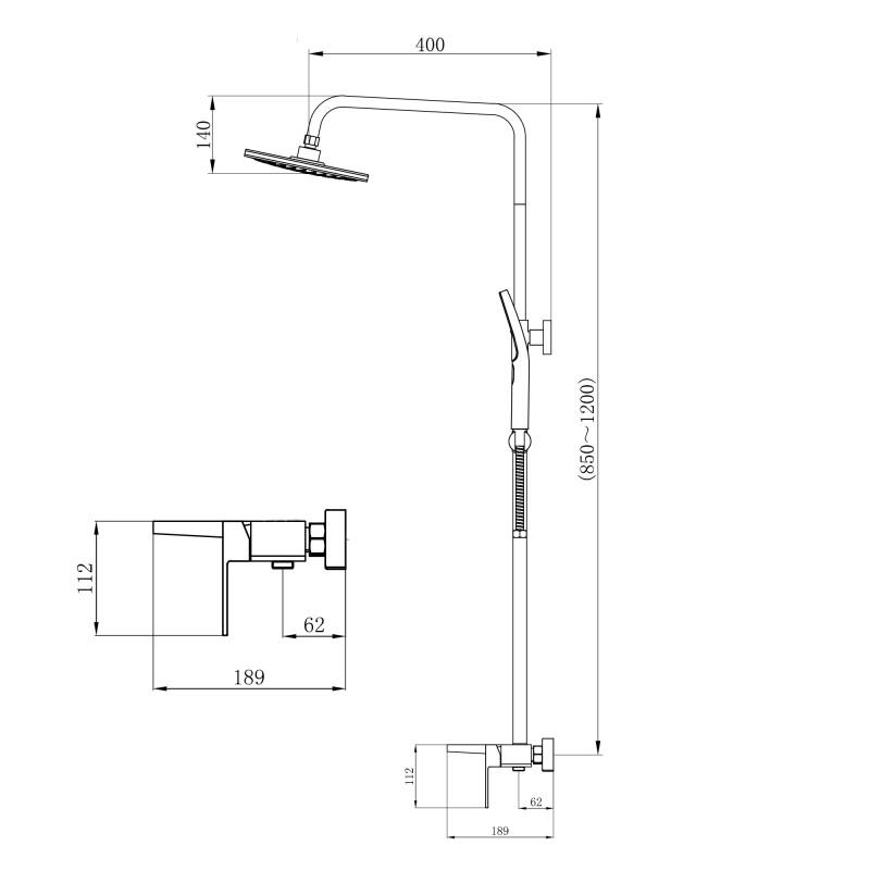 | Довжина кронштейна для верхнього душа, мм | 400 |