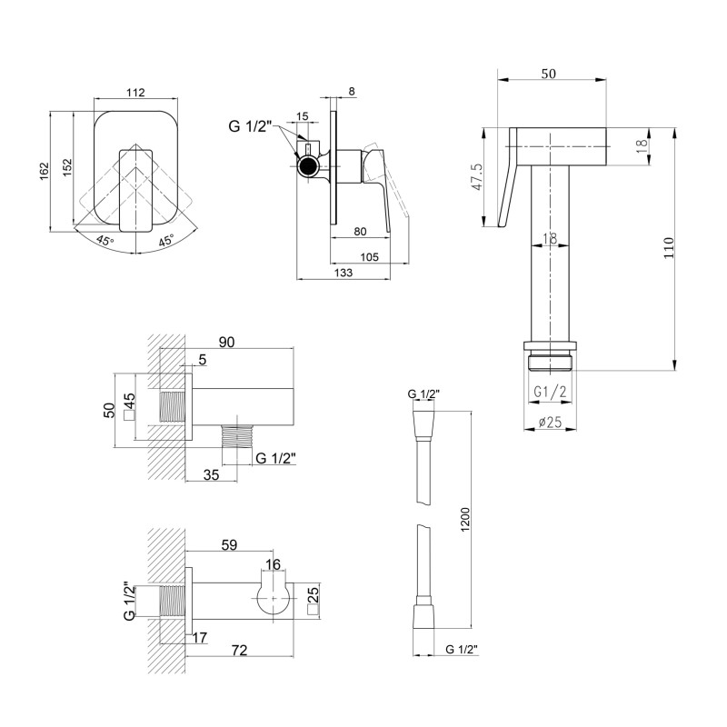 | Вага нетто, кг | 1,39 - смеситель; 0,32 - шланг; 0,226 - лейка; 0,295 - подключение |