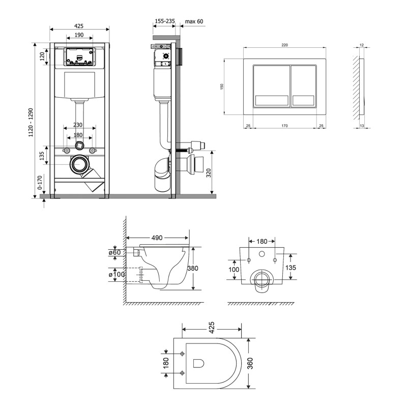 Матеріал | Инсталляция: Металл / ABS пластик. Панель смыва: ABS пластик. Унитаз: керамика. |