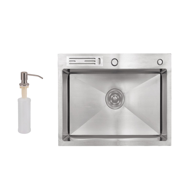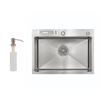 Мийка для кухні інтегрована з полицею для ножів Lidz Handmade H6045K (LDH6045KBRU43023) Brushed Steel 3,0/1,0 мм