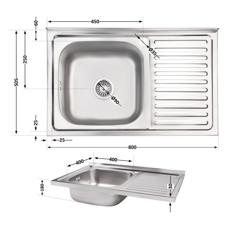 Кухонна мийка Lidz 5080-L 0,8 мм Satin (LIDZ5080LSAT8) виготовлена з нержавіючої сталі харчової марки, тому виріб прослужить довгі роки. Також варто відзначити винятковий дизайн, який прикрасить будь-яку кухню. Відмінна якість та дизайн мийки задовольнять найвибагливі побажання! Мийка виконана з робочою чашею, крилом для сушіння посуду й розморожування продуктів, отвором для змішувача. Монтується накладним способом в отвір в стільниці.