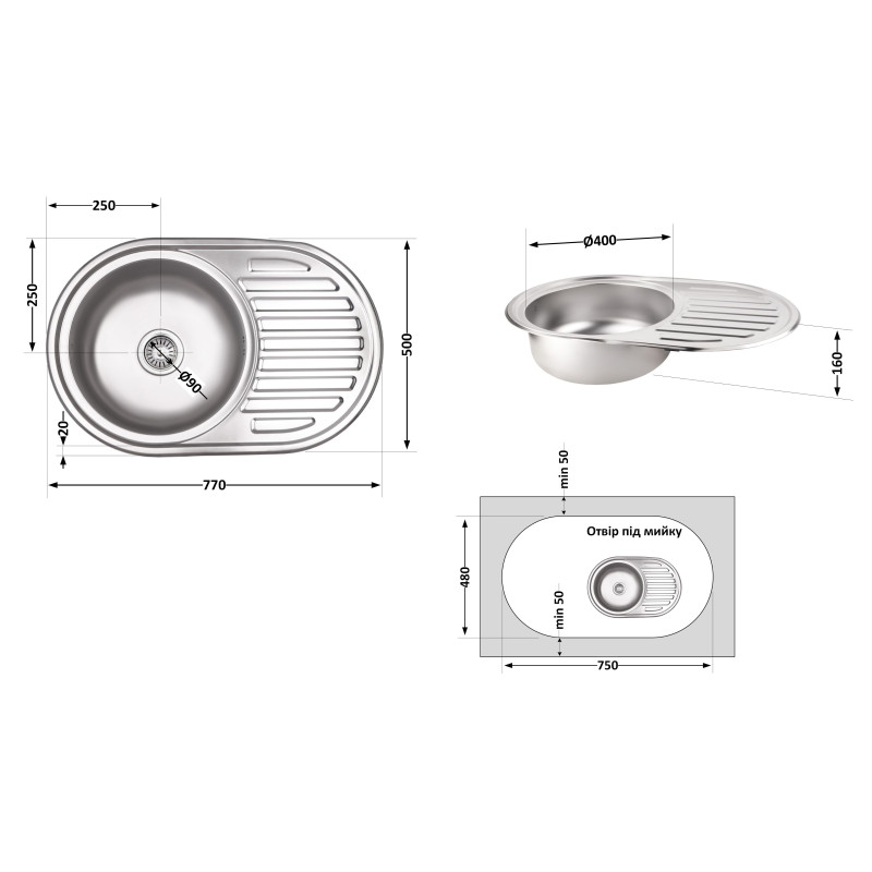 | Тип виробу | Кухонна мийка |