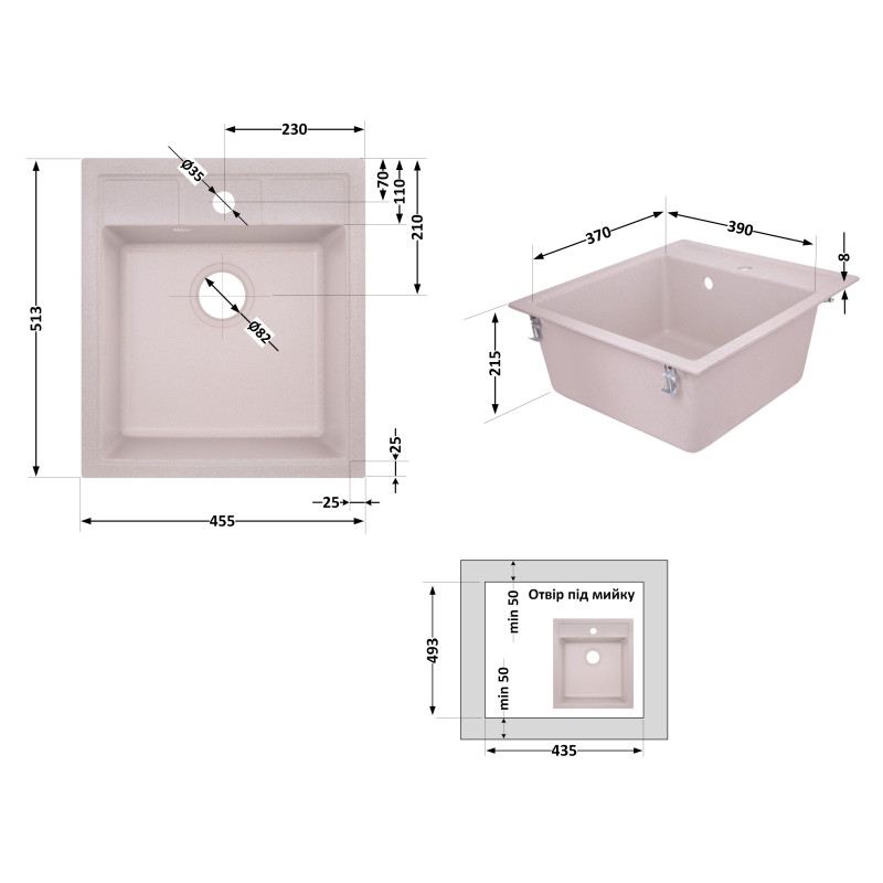 Кухонна мийка Lidz (COL-06) 460х515/200 виготовлена ??з якісного штучного каменю, з отвором під змішувач, має матову поверхню. Відмінна якість і дизайн мийки дозволять задовольнити найвищі вимоги. Вона виконана з робочою чашею, з отвором під зливник-перелив. Мийка монтується урізним способом в отвір в стільниці.