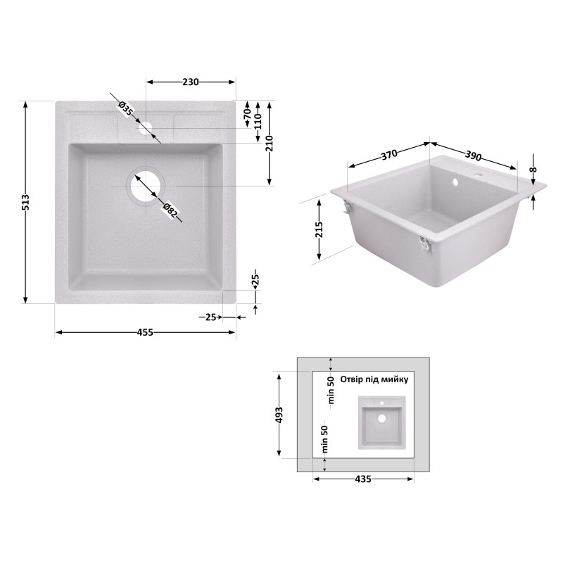 Кухонна мийка Lidz (GRA-09) 460х515/200 виготовлена ??з якісного штучного каменю, з отвором під змішувач, має матову поверхню. Відмінна якість і дизайн мийки дозволять задовольнити найвищі вимоги. Вона виконана з робочою чашею, з отвором під зливник-перелив. Мийка монтується урізним способом в отвір в стільниці.