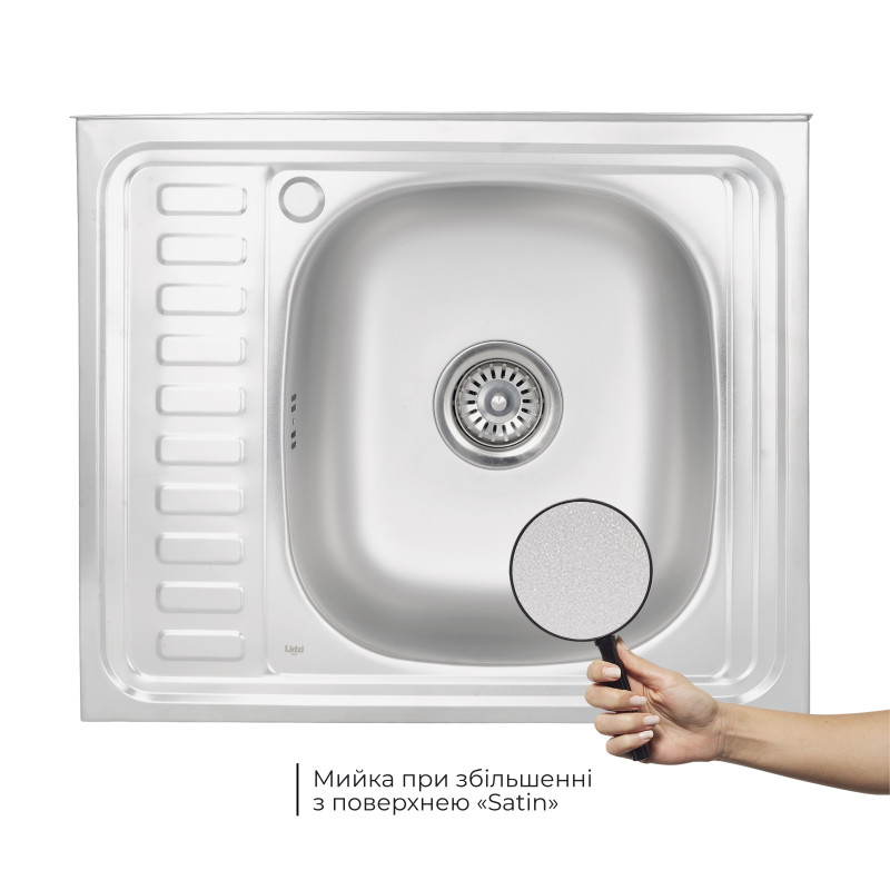 Кухонна мийка Lidz 6050-R 0,6 мм Satin виготовлена з високоякісної нержавіючої сталі харчової марки, тому виріб прослужить довгі роки. Також варто відзначити винятковий дизайн, який прикрасить будь-яку кухню. Відмінна якість та дизайн мийки задовольнять найвибагливі побажання й створять затишок у вашому домі! Мийка виконана з робочою чашею, ребристим крилом для сушіння посуду і розморожування продуктів, отвором для змішувача. Монтується накладним способом.