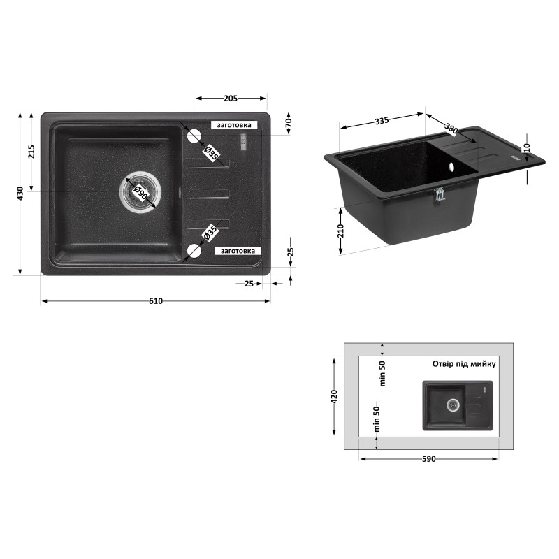 Кухонна мийка Lidz 620x435/200 BLM-14 (LIDZBLM14620435200) виготовлена ??з якісного штучного каменю, має матову поверхню і буде добре виглядати у поєднанні зі змішувачем того ж кольору. Виріб монтується урізним способом у підготовлений отвір в стільниці. Мийка виконана з робочою чашею та крилом, на ній є отвір зливник-перелив та заготовка для отвору під змішувач. Відмінна якість та дизайн мийки задовольнять найвибагливі вимоги.