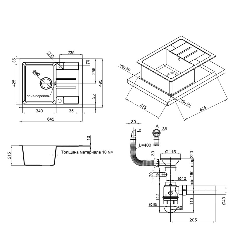Кухонна мийка Lidz 650x500/200 BLM-14 (LIDZBLM14650500200) виготовлена ??з якісного штучного каменю, має матову поверхню і буде добре виглядати у поєднанні зі змішувачем того ж кольору. Виріб монтується урізним способом у підготовлений отвір в стільниці. Мийка виконана з робочою чашею та крилом, на ній є отвір зливник-перелив та заготовка для отвору під змішувач. Відмінна якість та дизайн мийки задовольнять найвибагливі вимоги.