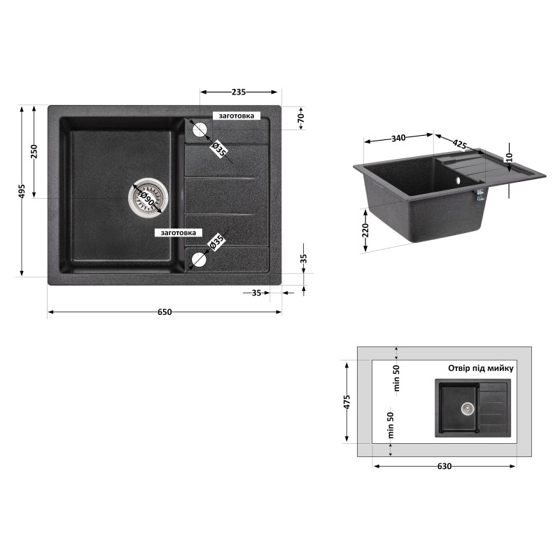 Тип виробу | Кухонная мойка |