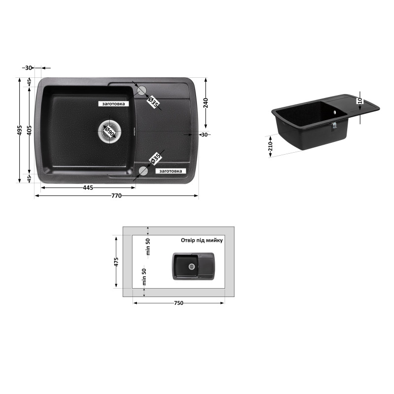 Кухонна мийка Lidz 770х490/200 BLM-14 (LIDZBLM14770490200) виготовлена ??з якісного штучного каменю, має матову поверхню і буде добре виглядати у поєднанні зі змішувачем того ж кольору. Виріб монтується урізним способом у підготовлений отвір в стільниці. Мийка виконана з робочою чашею та крилом, на ній є отвір зливник-перелив та заготовка для отвору під змішувач. Відмінна якість та дизайн мийки задовольнять найвибагливі вимоги.