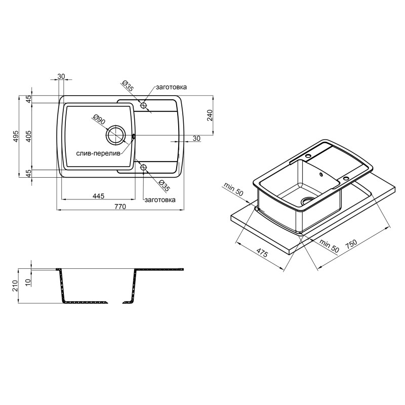 Кухонна мийка Lidz 770x490/200 GRA-09 (LIDZGRA09770490200) виготовлена ??з якісного штучного каменю, має матову поверхню і буде добре виглядати у поєднанні зі змішувачем того ж кольору. Виріб монтується урізним способом у підготовлений отвір в стільниці. Мийка виконана з робочою чашею та крилом, на ній є отвір зливник-перелив та заготовка для отвору під змішувач. Відмінна якість та дизайн мийки задовольнять найвибагливі вимоги.