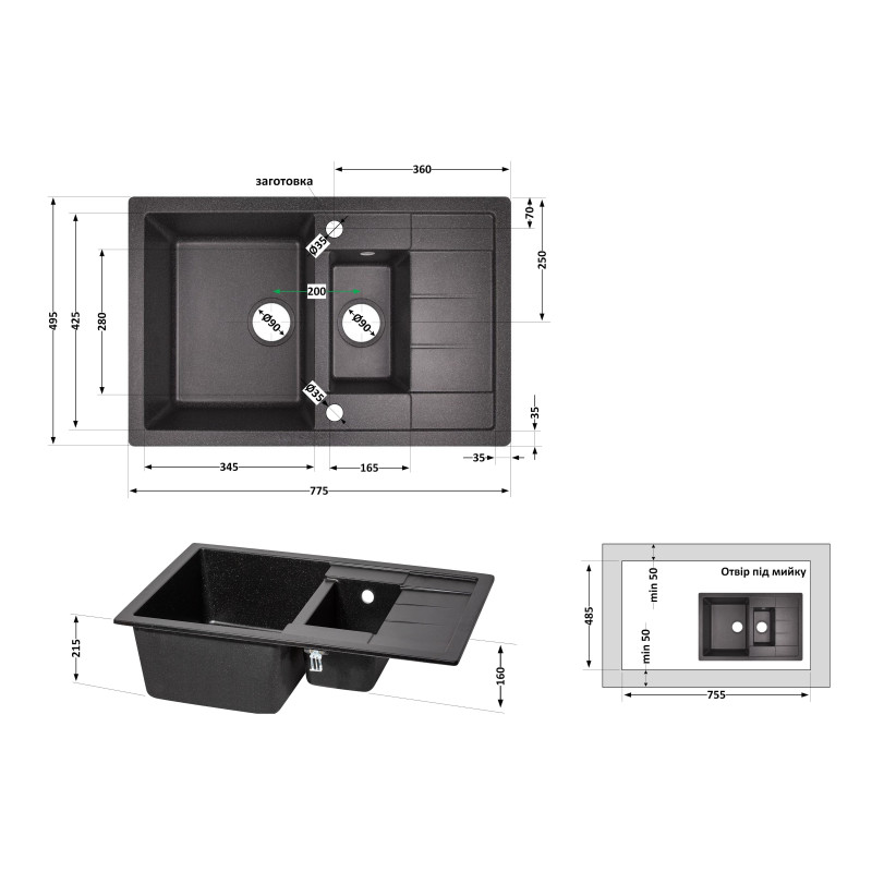 Кухонна мийка Lidz (BLA-03) 780x495/200 виготовлена з якісного штучного каменю, має чорну матову поверхню, тому буде чудово виглядати зі змішувачем того ж кольору. Відмінна якість та дизайн мийки задовольнять найвибагливі вимоги. Вона виконана з робочою чашею, додатковою для розморожування продуктів з отвором зливник-перелив та ребристим крилом для сушіння посуду. Мийка монтується урізним способом в отвір в стільниці.