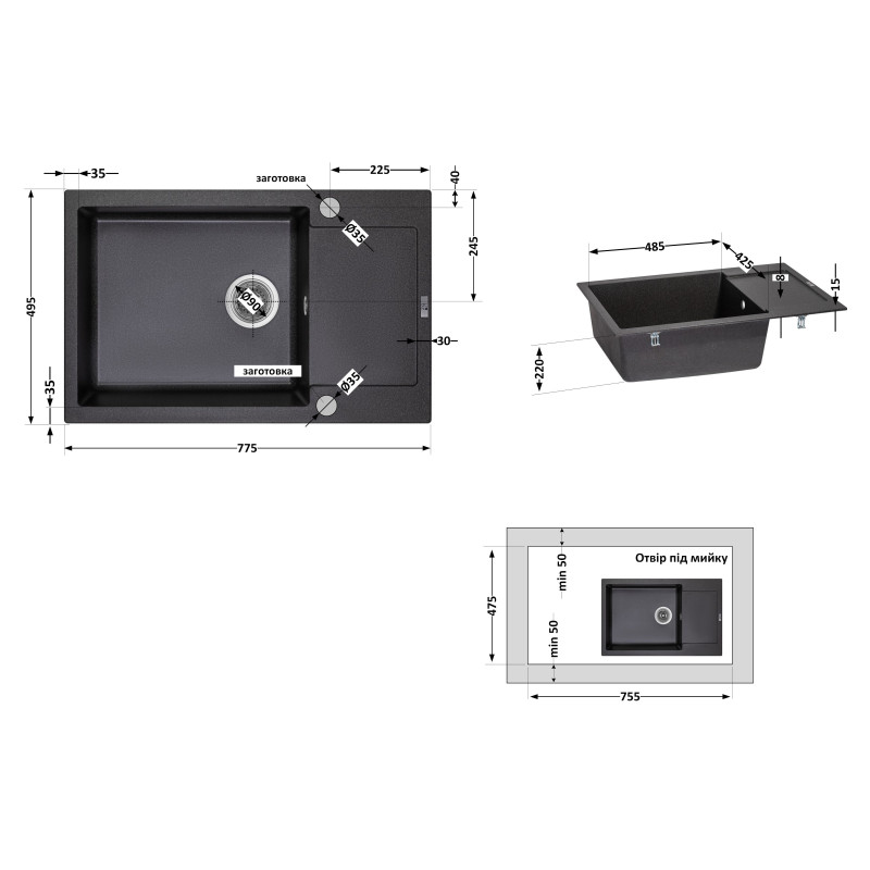 | Тип виробу | Кухонная мойка |