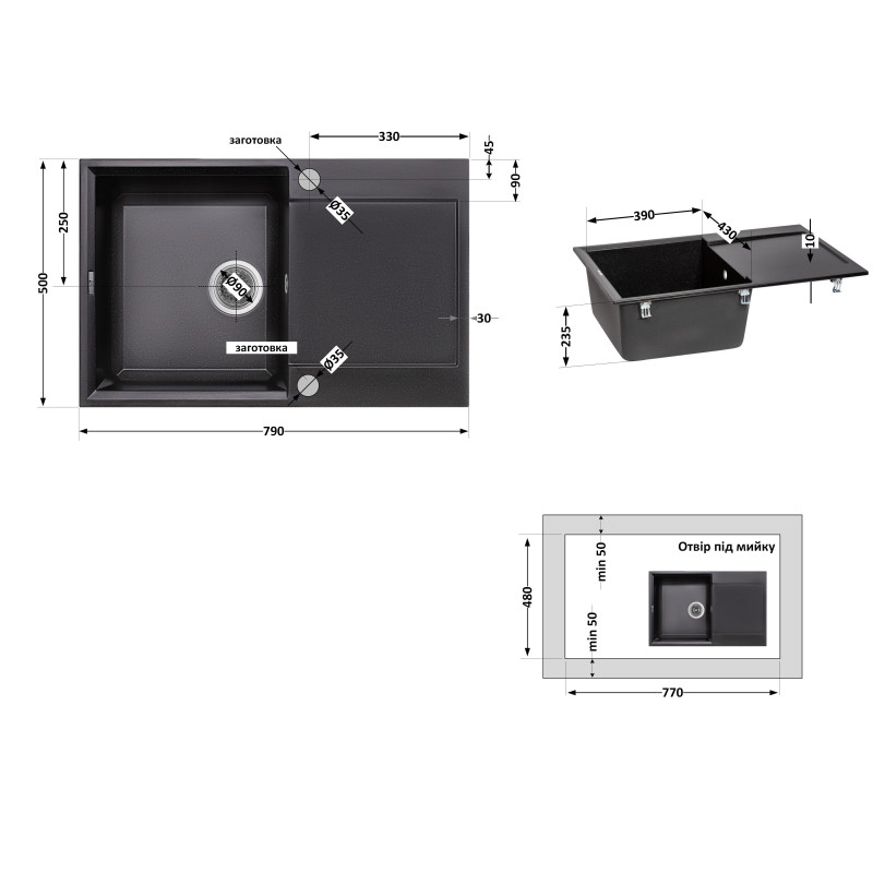 Кухонна мийка Lidz 790x495/230 BLM-14 (LIDZBLM14790495230) виготовлена ??з якісного штучного каменю, має матову поверхню і буде добре виглядати у поєднанні зі змішувачем того ж кольору. Виріб монтується урізним способом у підготовлений отвір в стільниці. Мийка виконана з робочою чашею та крилом, на ній є отвір зливник-перелив та заготовка для отвору під змішувач. Відмінна якість та дизайн мийки задовольнять найвибагливі вимоги.