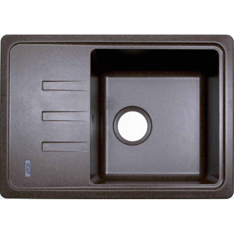 Кухонная гранитная мойка ARGO Carina 615x430x200 Коричневый - это высококачественный продукт, который изготавливается с помощью смеси гранитной крошки 80% и акриловых соединительных смол 20%, формованных в раковину.