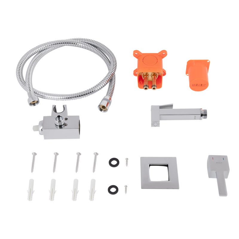 Комплектація | Смеситель со шланговым подсоединением, лейка для гигиенического душа, душевой шланг, ключ, крепежи. |