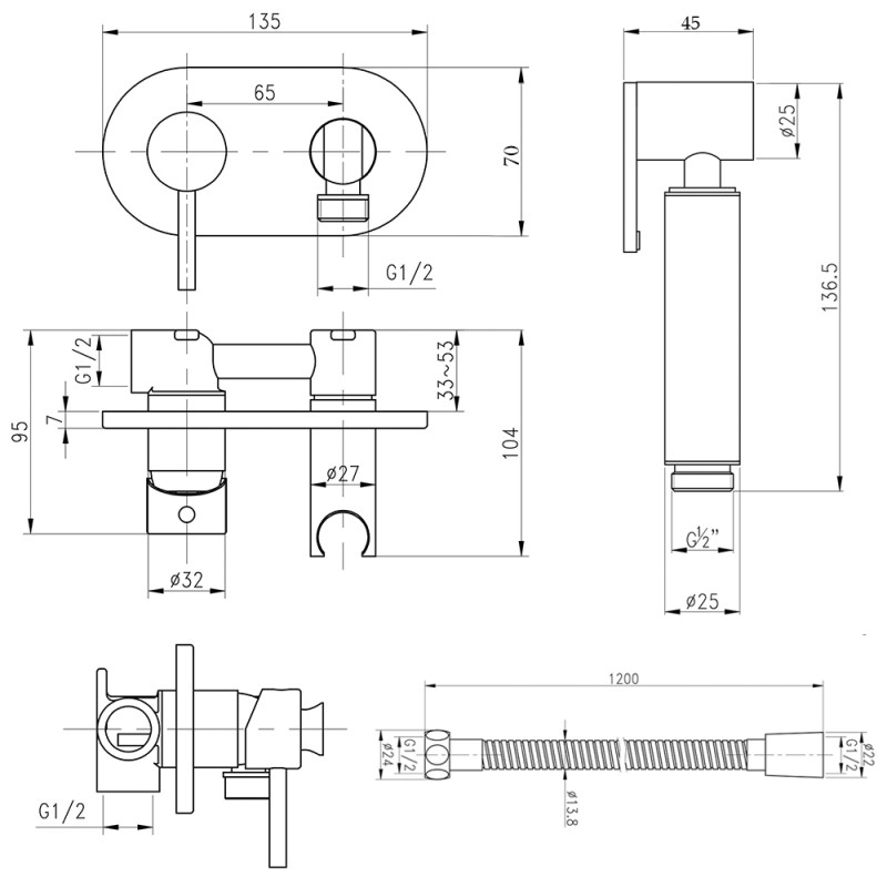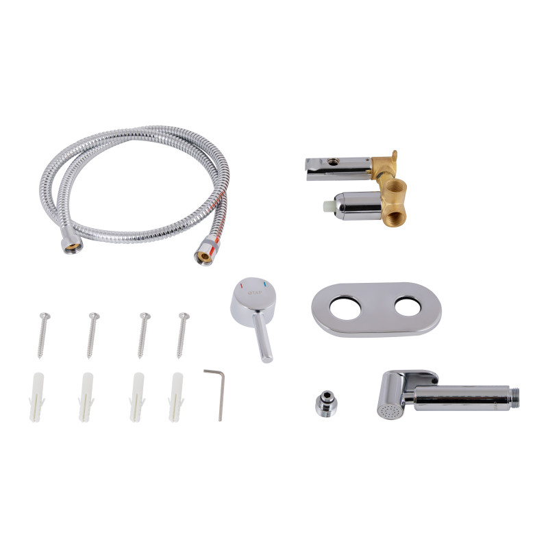 Комплектація | Смеситель, лейка для гигиенического душа, душевой шланг, шланговое подсоединение, накладная панель, ключ, крепежи. |