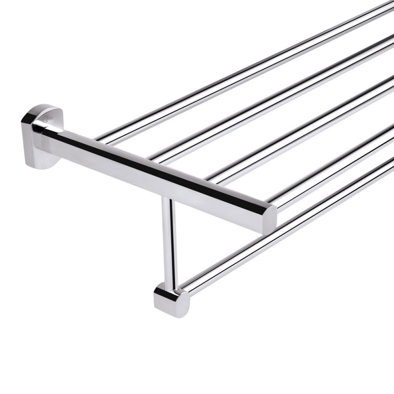 Тримач рушників Qtap Liberty CRM 1122 у вигляді решітки доповнить ванну кімнату з будь-яким інтер'єром і зробить її зручніше. Виконаний з латуні з хромованою глянсовою поверхнею, яка легко миється і не піддається корозії. Тримач складається з кріплення і чотирьох стрижнів довжиною 585 мм кожен, які дозволяють розмістити чотири рушники в складеному або повішеному стані. Крім того, виріб обладнано додатковим нижнім стрижнем для сушіння вологих рушників