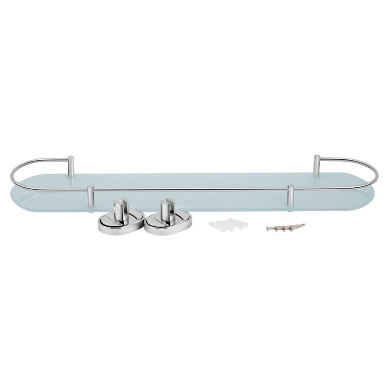 Цікаве дизайнерське рішення полиці для ванної кімнати з округлими краями підійде до будь-якого інтер'єру і зробить його більш привабливим. Полиця Lidz (CRG) 114.09.02 виконана з прозорого скла з пластинами кріплення з високоякісного металу з хромованим покриттям. Довжина полиці - 520 мм. Полицю можна розташувати під дзеркалом і зберігати на ній ванні засоби гігієни, а бортик захистить їх від випадкових падінь.