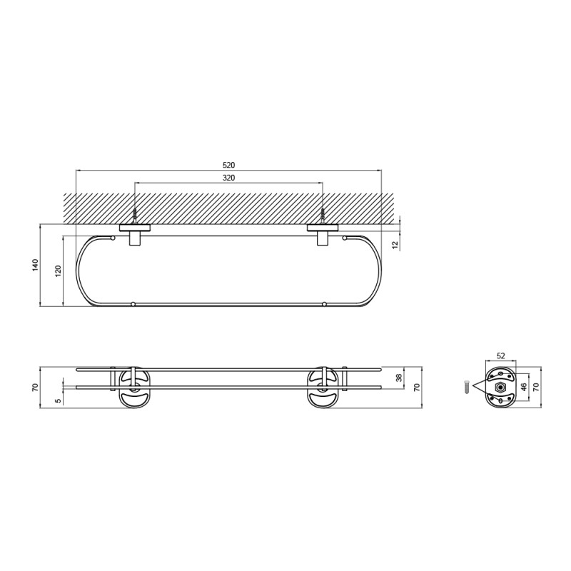 Габарити виробу (вхшхг), мм | 70х520х140 |