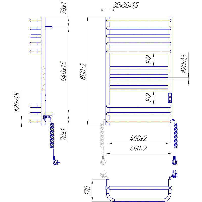 Характеристики рушникосушки електричної Mario Гера Люкс-I 800х490/170 TR K: