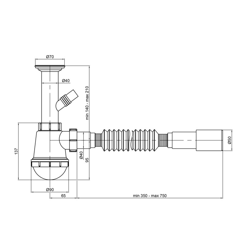Сифон для кухонної мийки Lidz (WHI) 60 05 M002 00 має вигляд колби виготовлений із пластику білого кольору. Виріб має гладку внутрішню поверхню, що перешкоджає накопиченню бруду на стінках. Резервуар колби легко знімається, тому його очищення від осілих твердих часток не завдасть зайвих клопотів. Гофрований вихід дає можливість змінювати довжину і кут труби. Даний сифон має окремий відвід для підключення побутових приладів, які використовують воду.