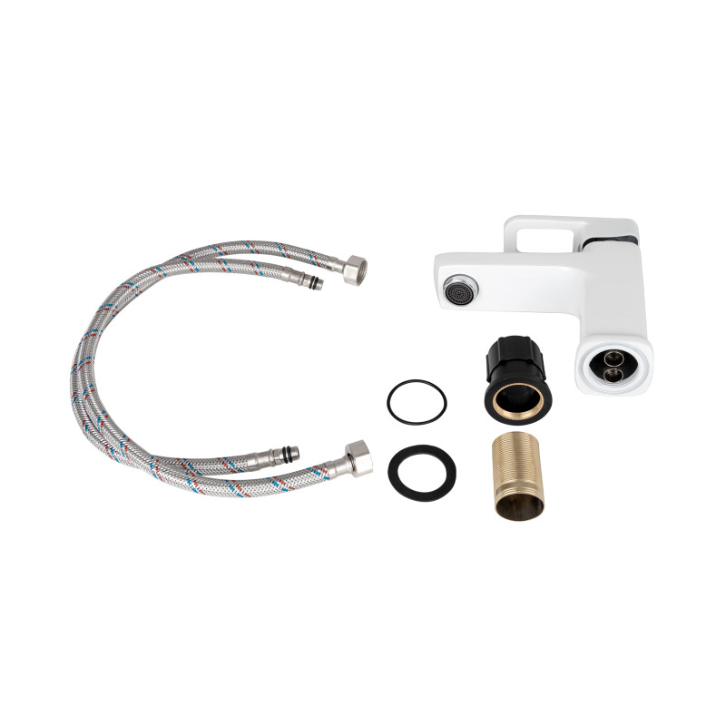 Змішувач для раковини Lidz Wawel 001 LDWAW001WHI45397 виготовлений із цинку у білому кольорі. Інтенсивність водного потоку та температура регулюються за допомогою переміщення важеля. Виріб кріпиться врізним способом за допомогою гнучкого підведення та кріплень, які комплектуються разом з ним в одне вантажне місце.