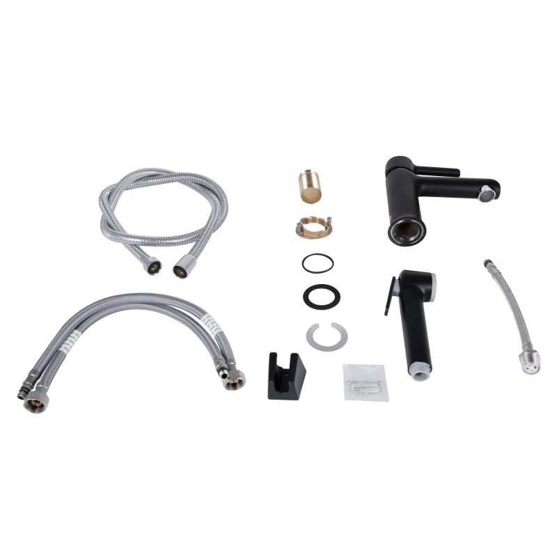 Комплектація | Смеситель, гибкие подводки, гигиенический душ, держатель для душа, крепежные элементы. |