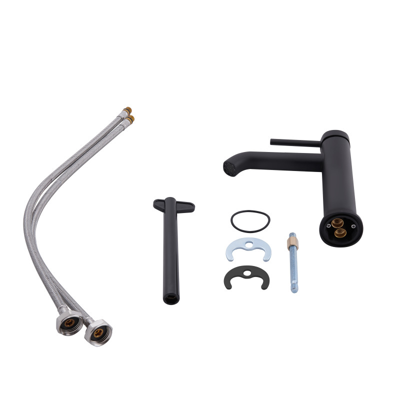 Змішувач для раковини Qtap Robin 1060102B виготовлено з високоякісної харчової латуні, що стійка до впливу корозії, ударів і тріщин. Матове чорне покриття не тільки підвищує довговічність змішувача, а й надає йому оригінальний зовнішній вигляд. Інтенсивність водного потоку та температура регулюються за допомогою переміщення важеля. Підключення води відбувається через гнучкі шланги з діаметром 1/2". Змішувач виконано в сучасному стилі.
