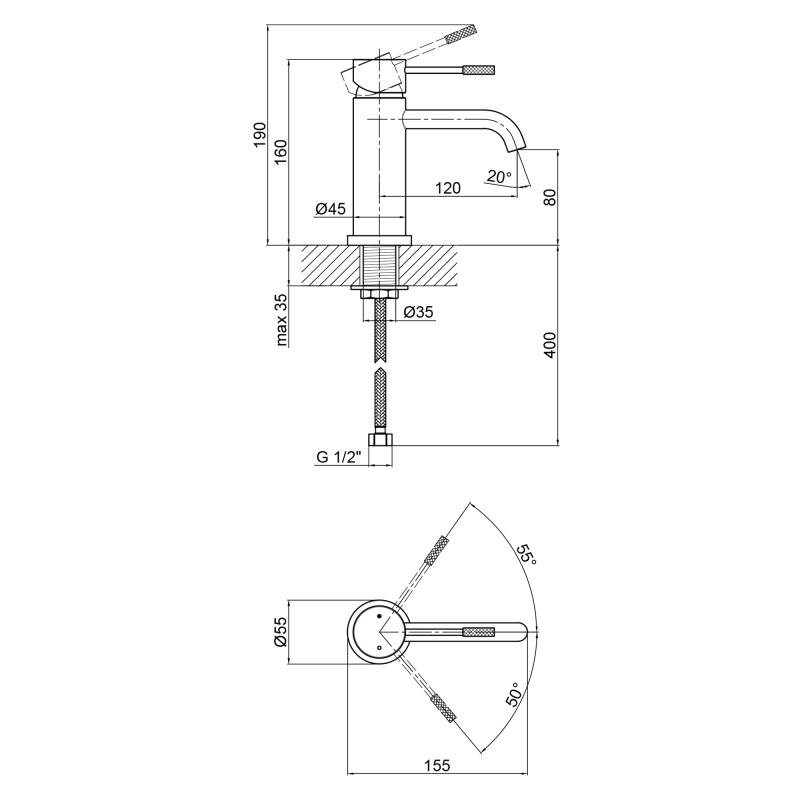 Змішувач для раковини Qtap Scorpio 1050105B виготовлено з високоякісної харчової латуні, що стійка до впливу корозії, ударів і тріщин. Матове чорне покриття не тільки підвищує довговічність змішувача, а й надає йому оригінальний зовнішній вигляд. Інтенсивність водного потоку та температура регулюються за допомогою переміщення важеля. Підключення води відбувається через гнучкі шланги з діаметром 1/2". Змішувач виконано в сучасному стилі.