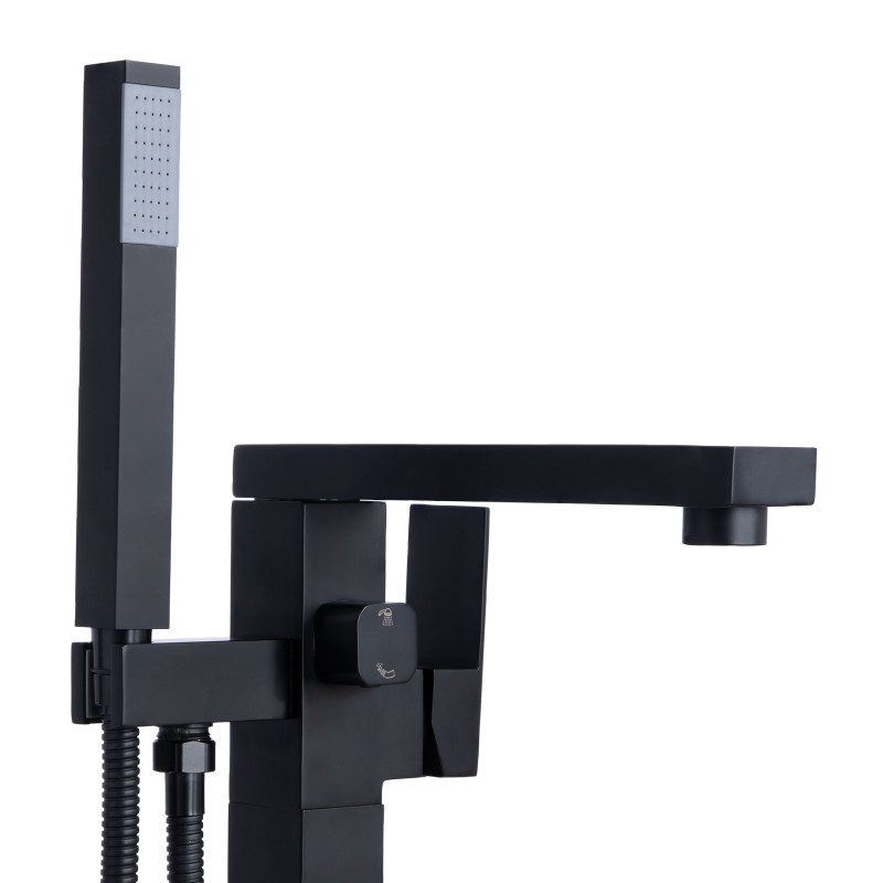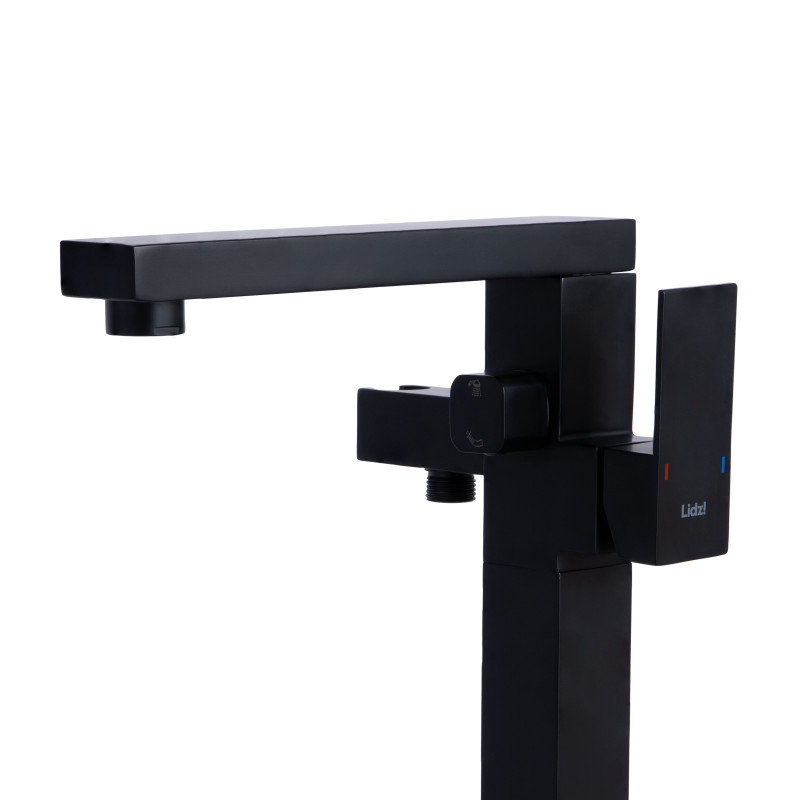 Змішувач для ванни Lidz Kubis 004 (з душовим гарнітуром) (k35) Black - це стильне рішення для сучасних ванних кімнат. Матовий чорний колір надає виробу розкішного та витонченого вигляду. Змішувач виконаний у підлоговій конструкції, що ідеально підходить для ванн вільної установки, і оснащений душовим гарнітуром для максимальної зручності.