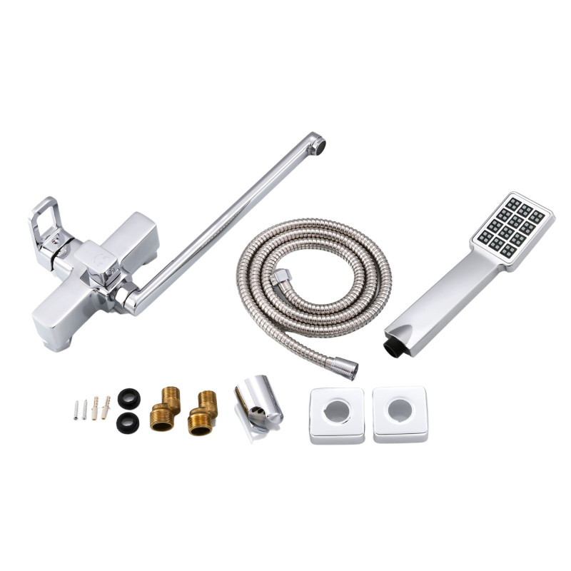 Змішувач для ванни Lidz Wawel 005 LDWAW005CRM45389 з довгим поворотним виливом виготовлений із силуміну, укомплектований кронштейном для ручного душу, душовим шлангом та лійкою. Завдяки якісному покриттю має міцну поверхню та привабливий зовнішній вигляд. Декоративні розетки приховують похибки установки на оздобленні кімнати. Напір води та її температура регулюються поворотом важеля в потрібне положення. Перемикання ванни/души здійснюється за допомогою дивертора.