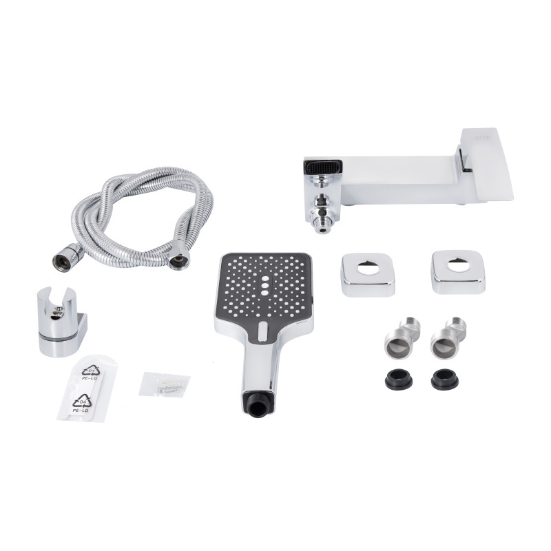Комплектація | Смеситель, душевая лейка, держатель лейки, комплект отражателей, комплект эксцентриков. |