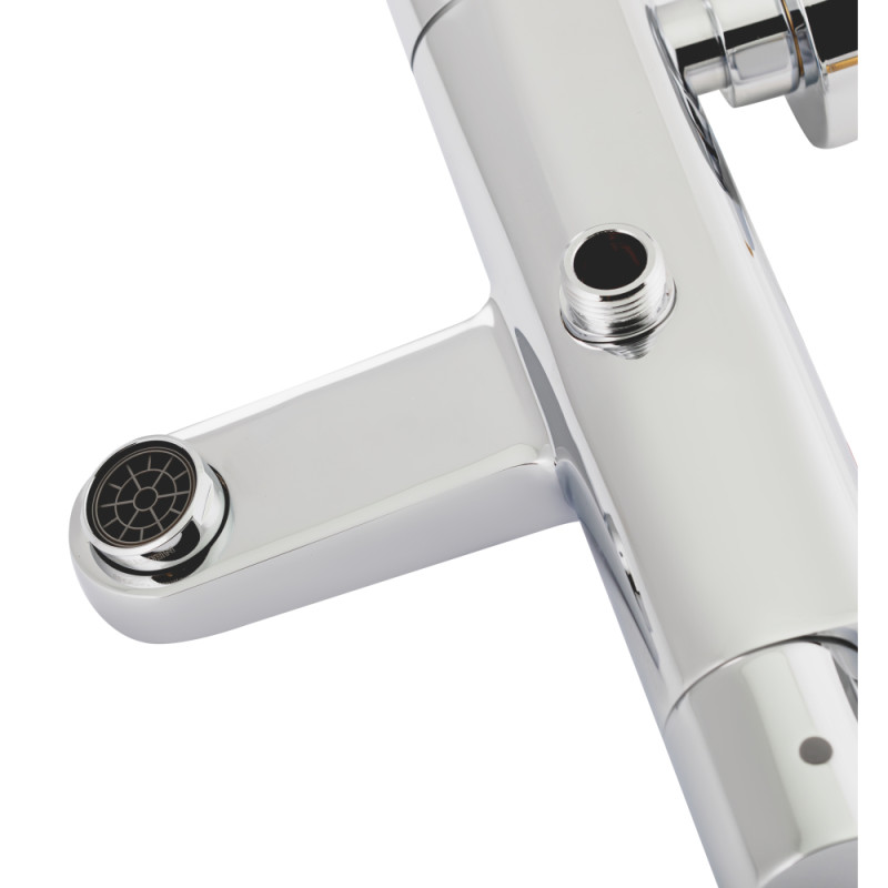 Змішувач термостатичний для ванни Qtap Votice 30T105-1GC має хромовану сяючу поверхню, яка стійка до утворення корозії, забруднень і стирання. Це гарантує тривалий термін експлуатації виробу. Для вмикання подачі води змішувач обладнаний двома регуляторами та шкалою, яка робить процес налаштування температури і напору води простим й інтуїтивно зрозумілим. Для його очищення досить протерти поверхню сухою серветкою.