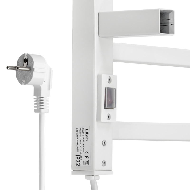 Сушарка рушників електрична Qtap Evia 11113S WHI виготовлена в білому кольорі і виконана з високоякісної сталі, має високою антикорозійною стійкістю. Модель може встановлюватися в підвісному варіанті. Вона кріпиться до стіни за допомогою кріпильних деталей, блок живлення знаходиться на вертикальній трубі. Сушарка призначена для швидкої та ефективної сушки рушників або білизни. Конструкція сушарки забезпечує компактність і безпеку її використання.