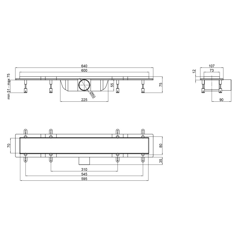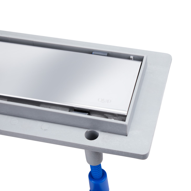 Лінійний трап Qtap Dry Tile304-600 допоможе облаштувати сучасну душову зону без застосування душового піддона, на рівні з підлогою. Корпус трапа виконано з якісного пластику сірого кольору. Дана модель виконана з декоративною накладкою 600х73 мм і випускним отвором діаметром 50 мм, яка виготовлена з нержавіючої сталі і за необхідності перетворюється у лоток під укладення керамічної плитки. Завдяки сухому закриву неприємний запах не буде проникати в приміщення з каналізації.