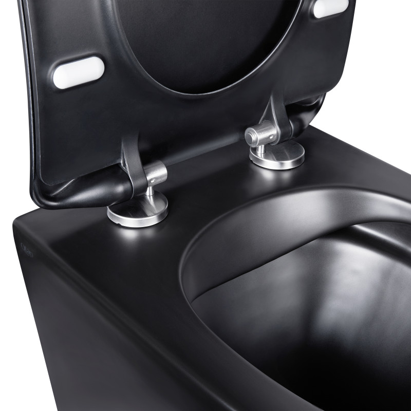 Підвісний унітаз Qtap Robin Rimless QT1333046ENRMB має класичний дизайн, тому буде доречний в інтер'єрі в будь-якому стилі. Сидіння з функцією SOFT CLOSE, яке опускається плавно та безшумно, не шкодить покриттю унітаза. Унітаз виконаний з кераміки в чорному кольорі та покритий емаллю для захисту від вологи. Унітаз без обідка, тому бруд не скупчується під ним, немає неприємного запаху, швидко миється.