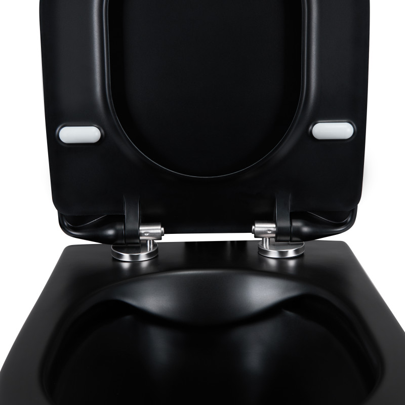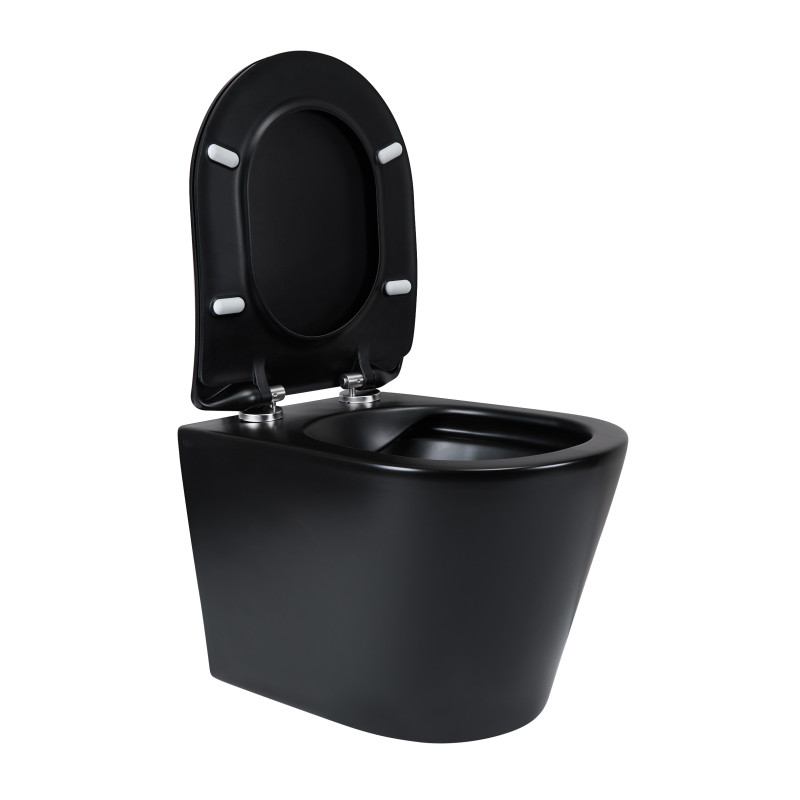 Підвісний унітаз Qtap Scorpio безобідковий з сидінням Soft-close QT1433053ERMB має класичний дизайн, тому буде доречний в інтер'єрі в будь-якому стилі. Сидіння з функцією soft close, яке опускається плавно і безшумно, не шкодить покриттю унітазу. Виріб виконаний з кераміки в чорному кольорі і вкритий емаллю для захисту від вологи. Завдяки підвісній конструкції прибирання не додасть зайвого клопоту.