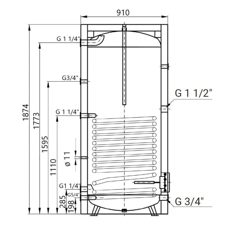 | Комплектація | Водонагреватель со змеевиком, аноды, термометр, регулировочные ножки, инструкция, гарантийный талон |