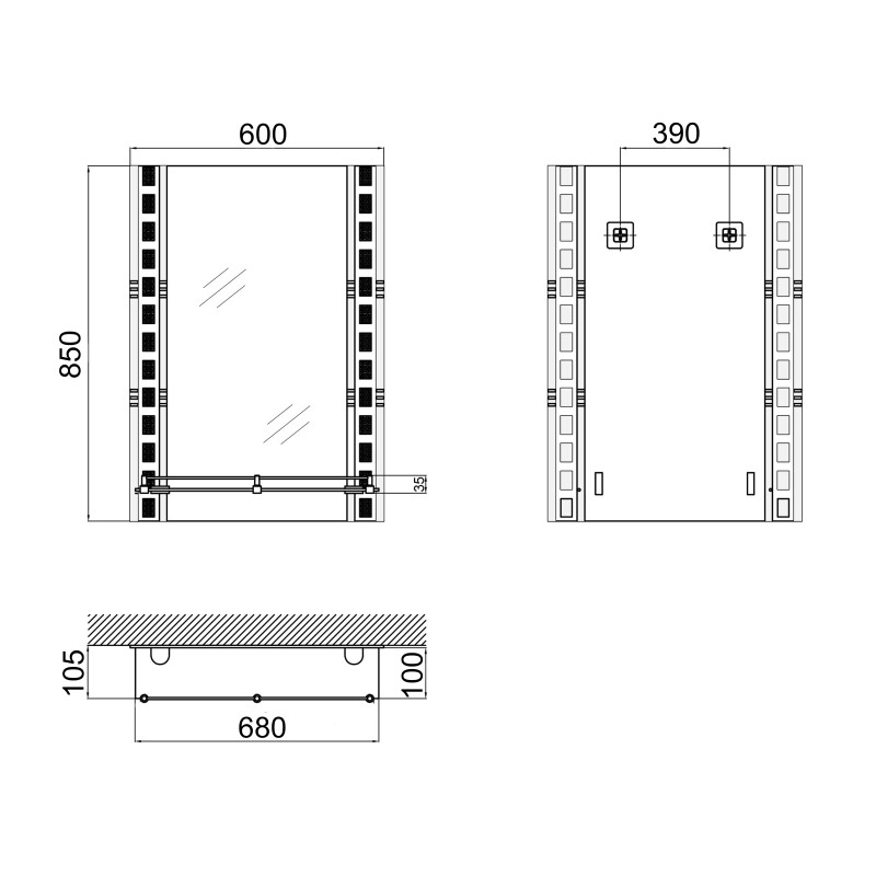 Габаритные размеры изделия (ШхГхВ), мм | 600х105х850 |