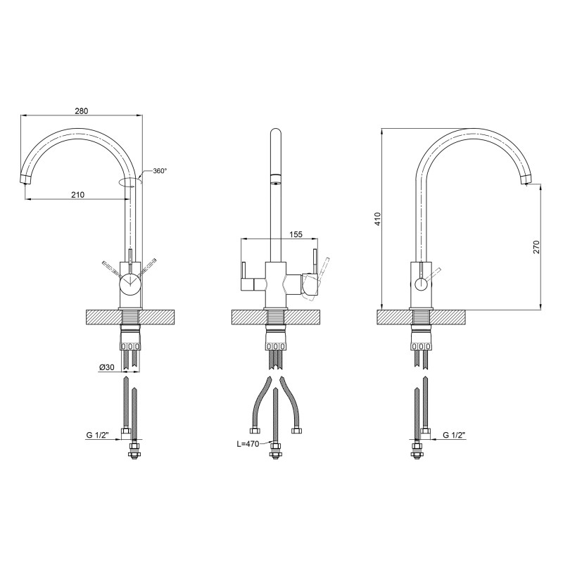 Додаткові характеристики | Довжина гнучкого підведення - 470 мм. |
