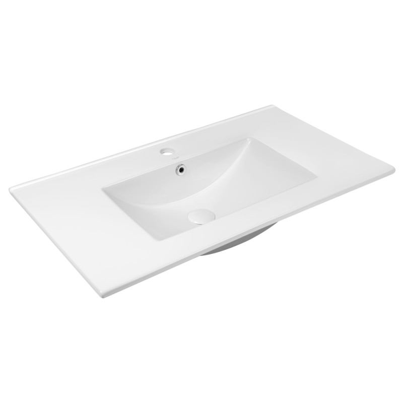 современное изделие, которое изготовлено из высококачественных материалов в белом цвете и прямоугольной форме. Умывальник монтируется в столешницу, что выглядит стильно и экономит место.