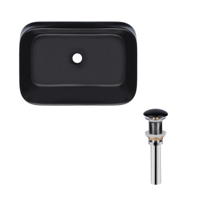 Комплект Qtap Scorpio: Раковина накладная прямоугольная 550х390х120 мм Matt Black + Донный клапан PU03